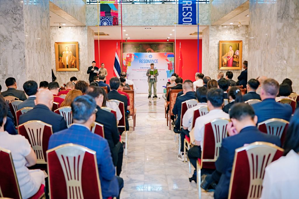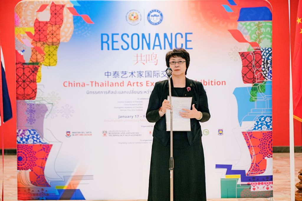 1月17日下午,“共鸣——中泰艺术家国际交流展·泰国展站”在泰国易三仓大学素万那普校区博物馆开幕。展览汇聚中泰两国多所高校艺术家,通过绘画、雕塑、装置等多样艺术形式,集中呈现当代艺术在不同文化语境中的探索与表达,持续推动中泰艺术领域的学术对话与文化交流。中华人民共和国驻泰王国大使馆教育参赞许兰,泰国高等教育、科学、研究与创新部高等教育委员会副主席基蒂猜·特里拉塔那西里猜 教授(Assoc. Prof. Dr. Kittichai Triratanasirichai),泰国易三仓大学校长西里猜·丰色卡博士(Rev. Bro. Dr. Sirichai Fonseka),河北美术学院常务副校长张建敏,联合国教科文组织乡村创意与可持续发展教席、北京大学教授向勇,中央美术学院国际交流处处长王川等出席开幕式。